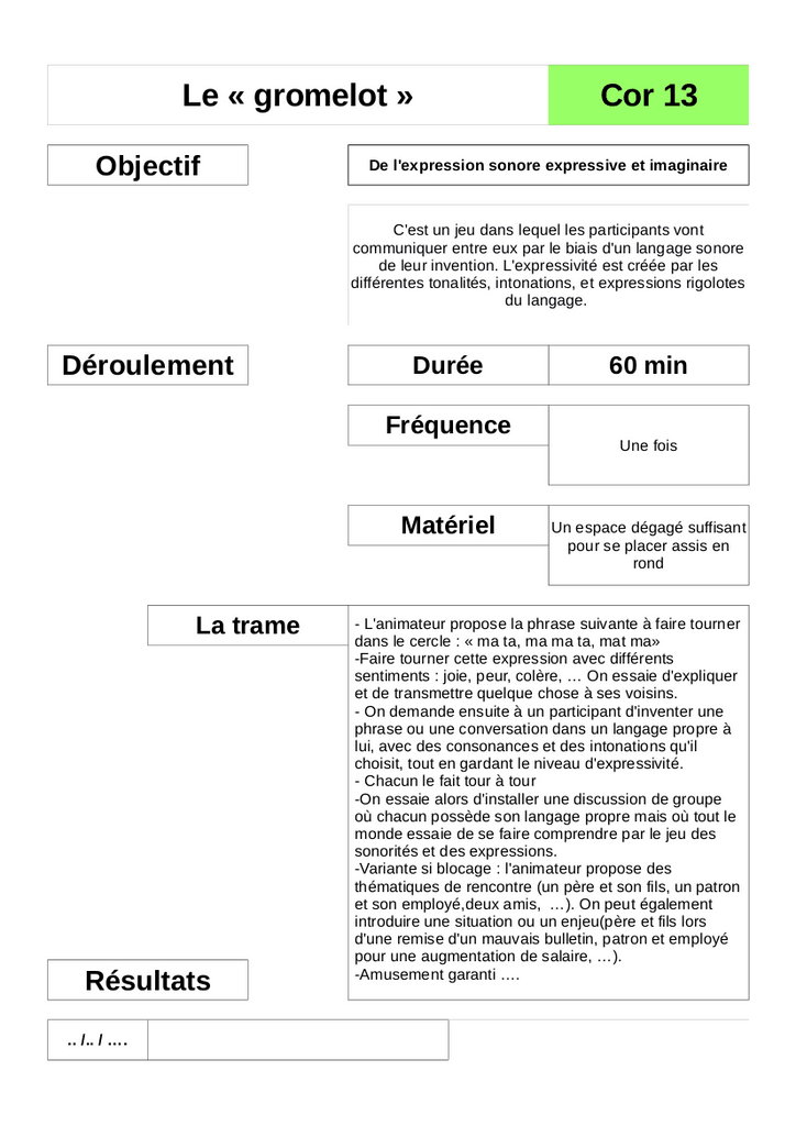 Cor 13 - Le gromelot